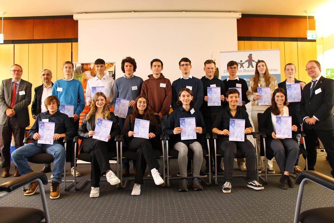 Die Verleihung der Dr. Hans Riegel-Fachpreise fand in einem festlichen Rahmen auf dem Campus, im Senatssaal der Johannes Gutenberg-Universität Mainz (JGU) statt, und das Themenspektrum aus den MINT-Fächern Chemie, Geographie, Informatik, Mathematik und Physik war wie gewohnt beachtlich: Eine Untersuchung zur Umsetzbarkeit von Blauem Strom durch Osmose-Diskussion von Osmosekraftwerke; die Auswirkungen der Coronapandemie auf die Tourismusregion Westerwald-Lahn mit besonderem Blick auf Montabaur oder die Frage ob Brennstoffzellen als zukunftsfähige Energiequelle dienen können. Das sind nur drei Beispiele für die hochinteressanten und gegenwärtigen Fragestellungen bzw. Themen, denen Schüler*innen aus Rheinland-Pfalz nachgingen. Eine Experten-Jury der JGU bewertete die Arbeiten nach wissenschaftlichen Kriterien, wobei besonders kreative Themenstellungen sowie ein deutlich erkennbarer praktischer Eigenanteil (z. B. in Form von Experimenten) wichtige Einflussgrößen der Prämierung waren.